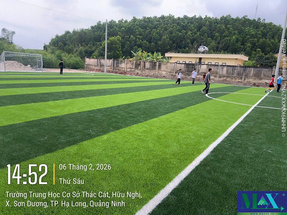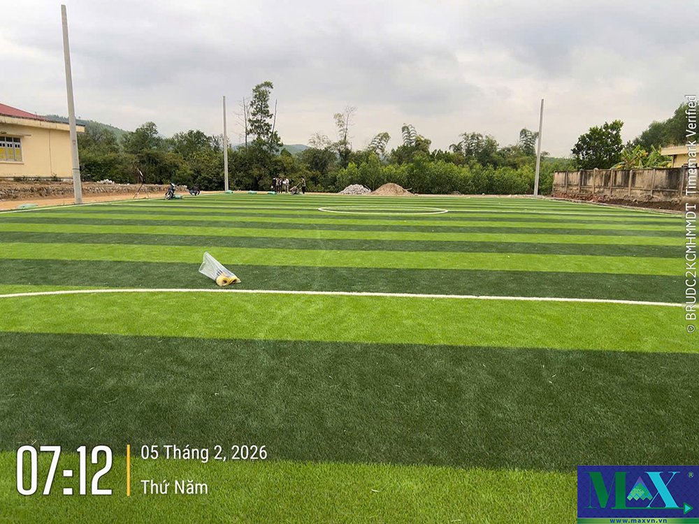 Thi công sân bóng cỏ nhân tạo tại đảo Cái Chiên - Quảng Ninh