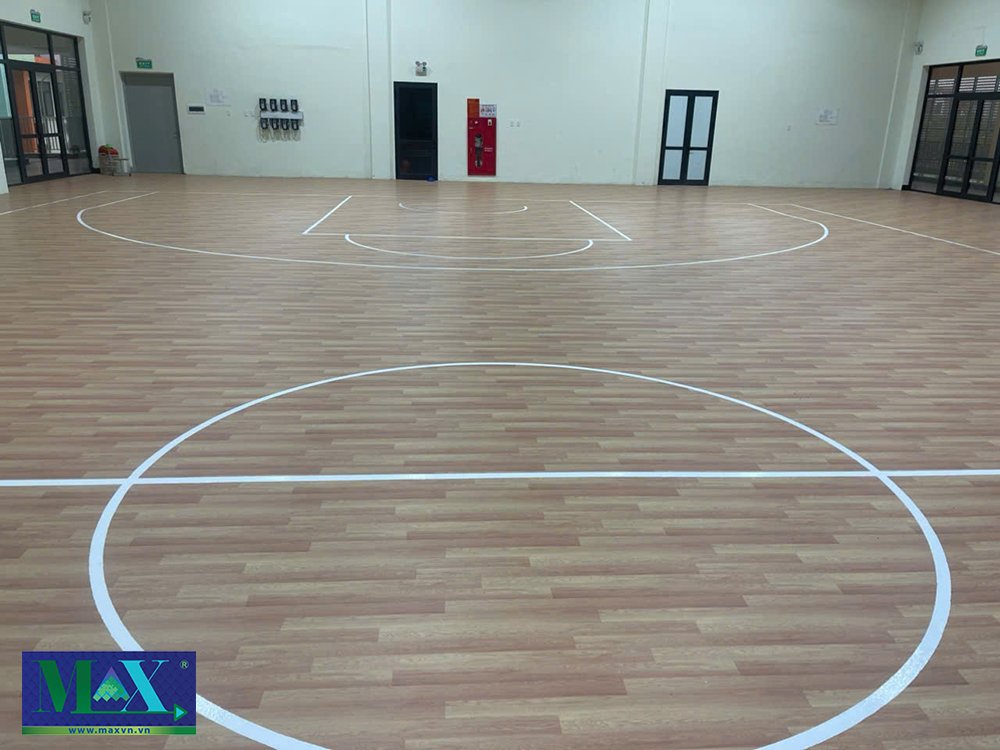Thi công sân bóng rổ phối màu thảm Vinyl